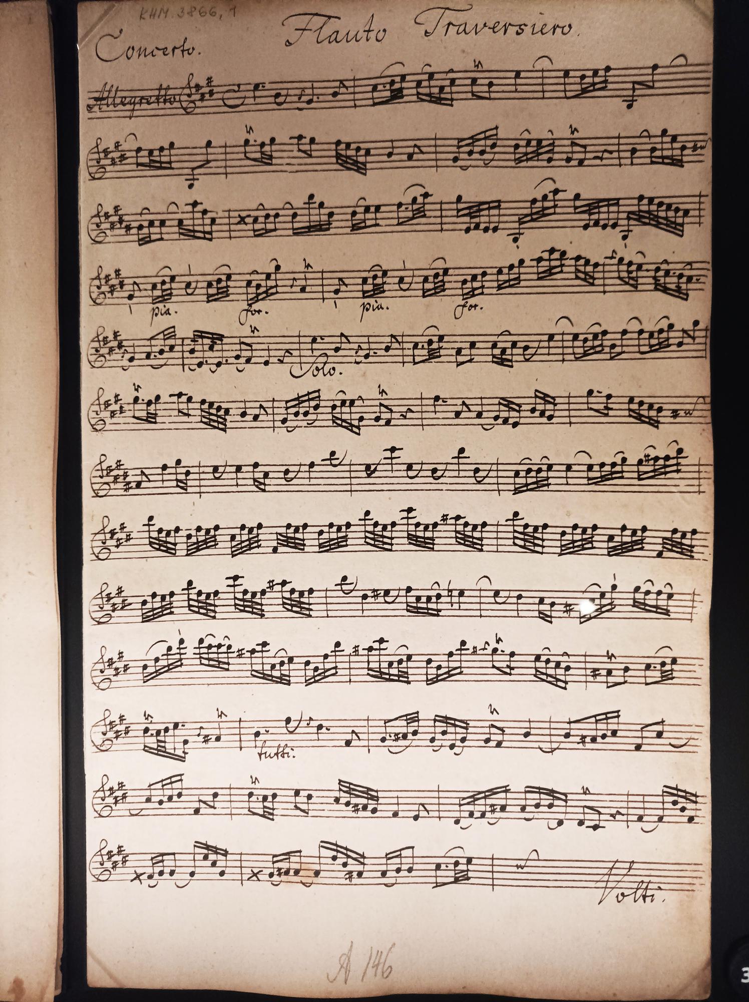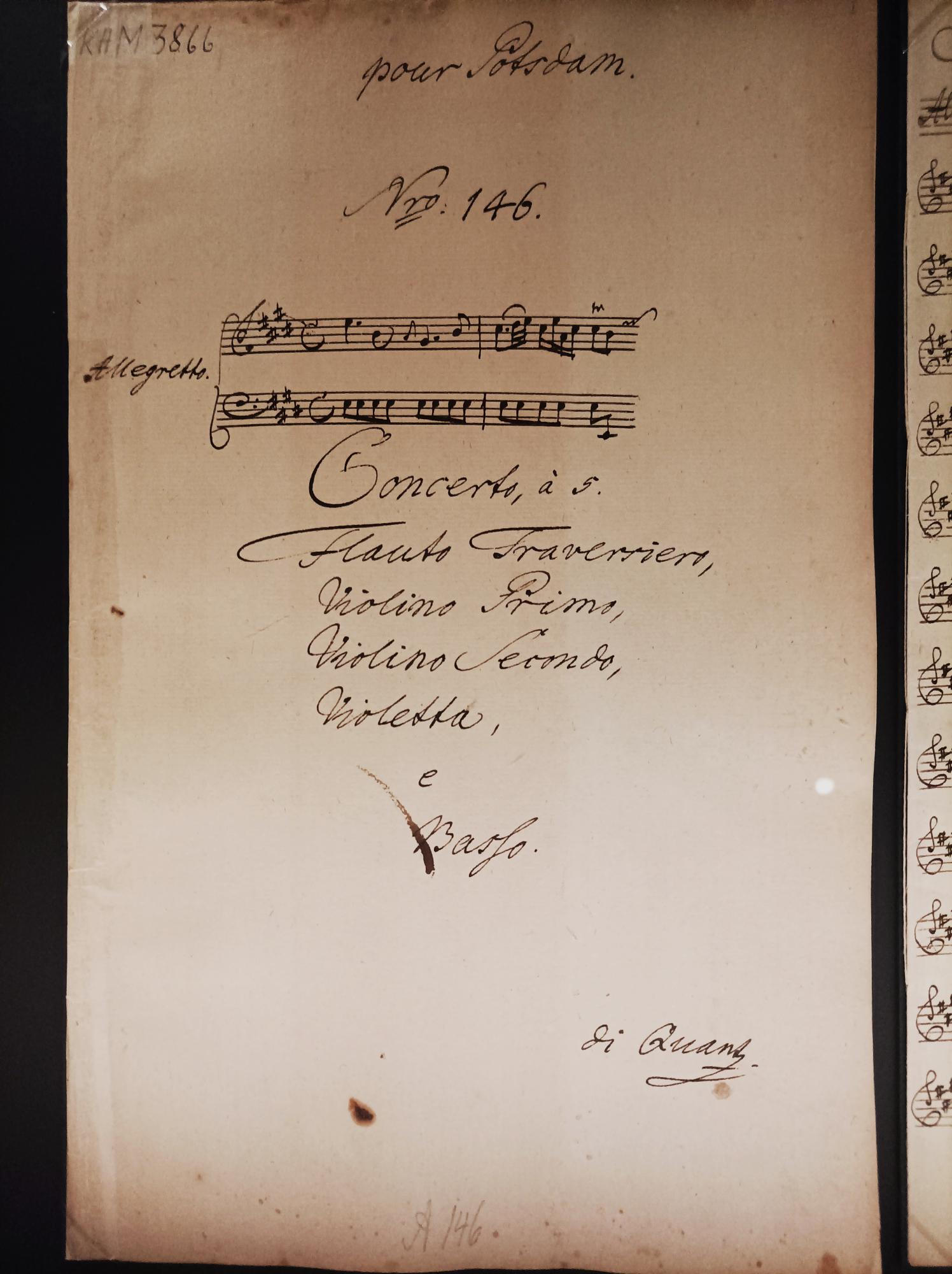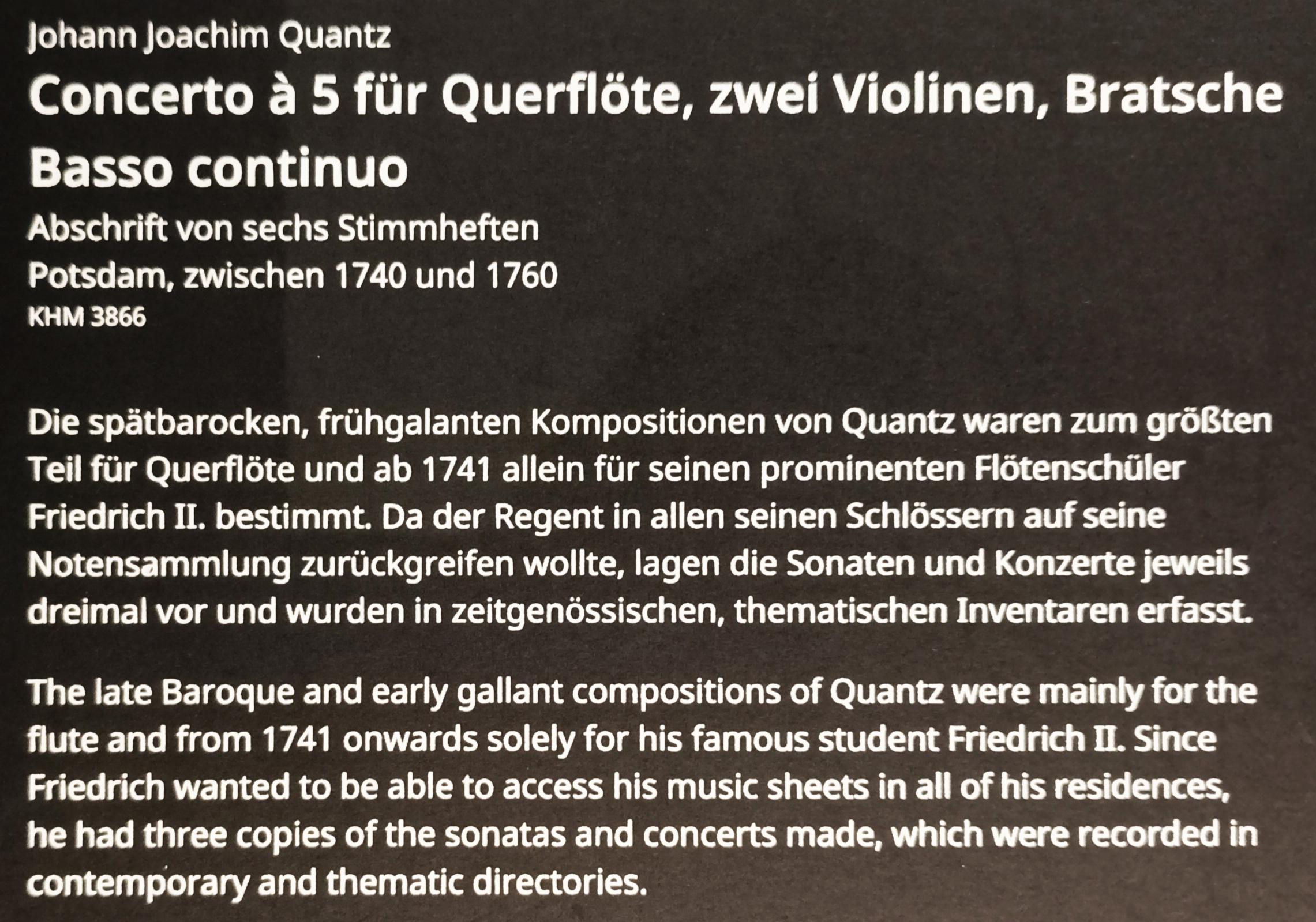 Yesterday I visited the Stabi Kulturwerk in Berlin. I was able to look at original sheet music of a concert for 5 Joachim Quantz wrote for Fritz.